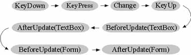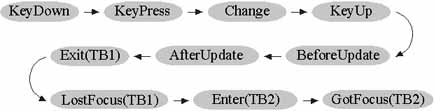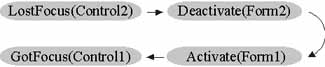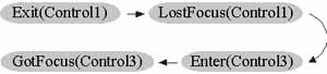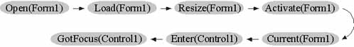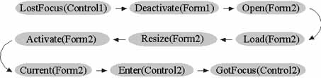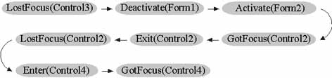 This example shows the sequence of events that are triggered in a typical scenario while you work with forms and controls.