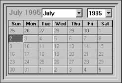 There are two types of ActiveX controls. The first type is visible both at design time and at run time. An example of this type of ActiveX control is the Calendar control included with Microsoft Access. The Calendar control displays a calendar for a particular month in a particular year, as shown in the following illustration.