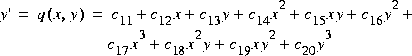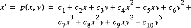 class provides a quadratic-based description of an image warp. The source position (x', y') of a point (x, y) is given by the following quadratic bivariate polynomial: