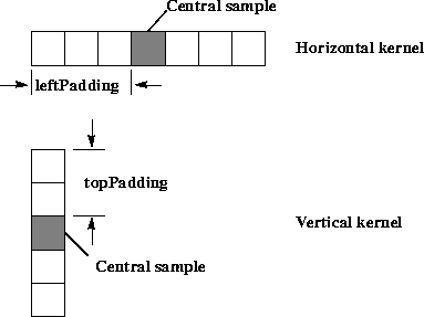 to return true. A subclass may override these methods to provide distinct implementations of horizontal and vertical interpolation. Some subclasses may implement the two-dimensional interpolation methods directly, yielding more precise results, while others may implement these using a two-pass approach.When interpolations that require padding the source such as Bilinear or Bicubic interpolation are specified, the boundary of the source image needs to be extended such that it has the extra pixels needed to compute all the destination pixels. This extension is performed via the