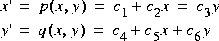 class provides an affine-based warp. The transform is specified as a mapping from destination space to source space. In other words, it is the inverse of the normal specification of an affine image transformation.The source position (x', y') of a point (x, y) is given by the quadratic bivariate polynomial:
