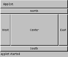 Here is an example of five buttons in an applet laid out using the BorderLayout layout manager