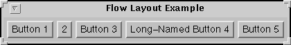 FlowLayout is the default layout manager for all Panels. It simply lays out components from left to right, starting new rows if necessary. Both Panels in the CardLayout figure above use FlowLayouts. Here's another example of an applet that uses a FlowLayout.